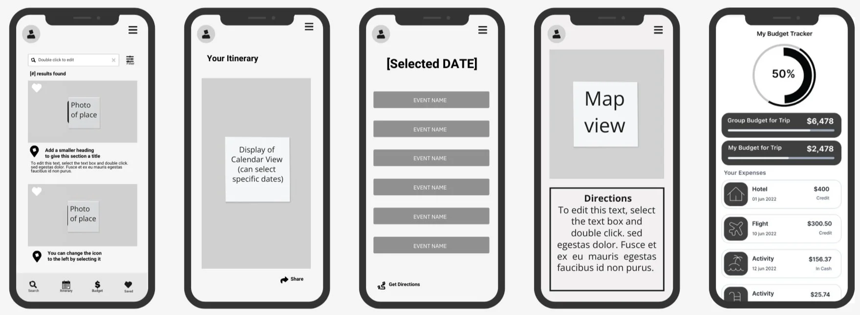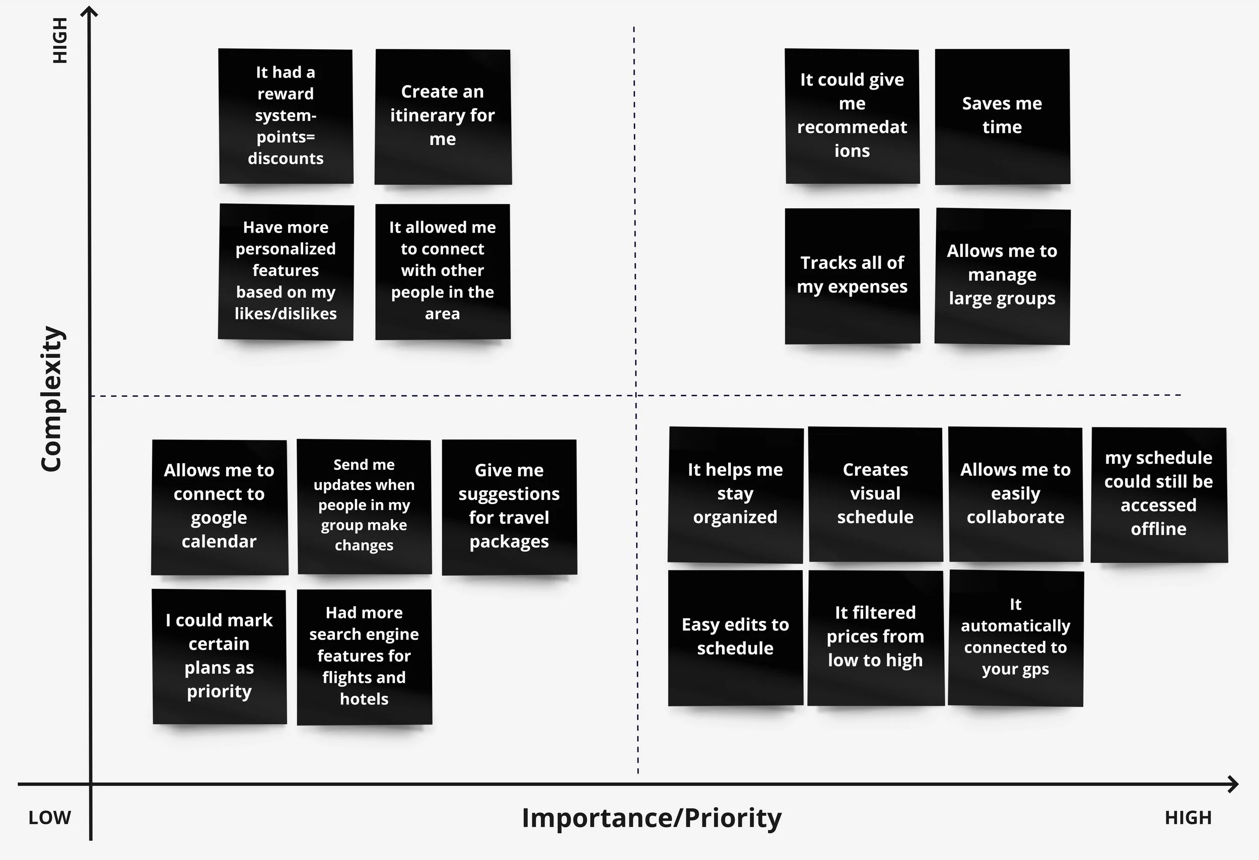 According to user research, here is how I prioritized the main features of the app. The focus was to optimize organization during travel planning.