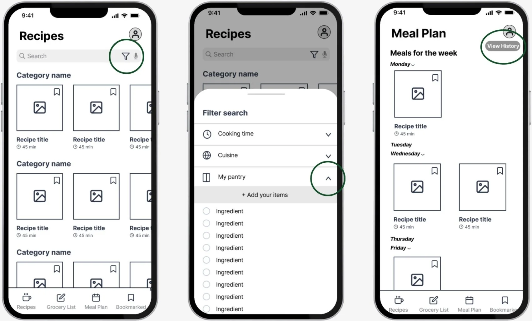 History option moved from “Bookmarked Recipes” page to “Meal Plan” page