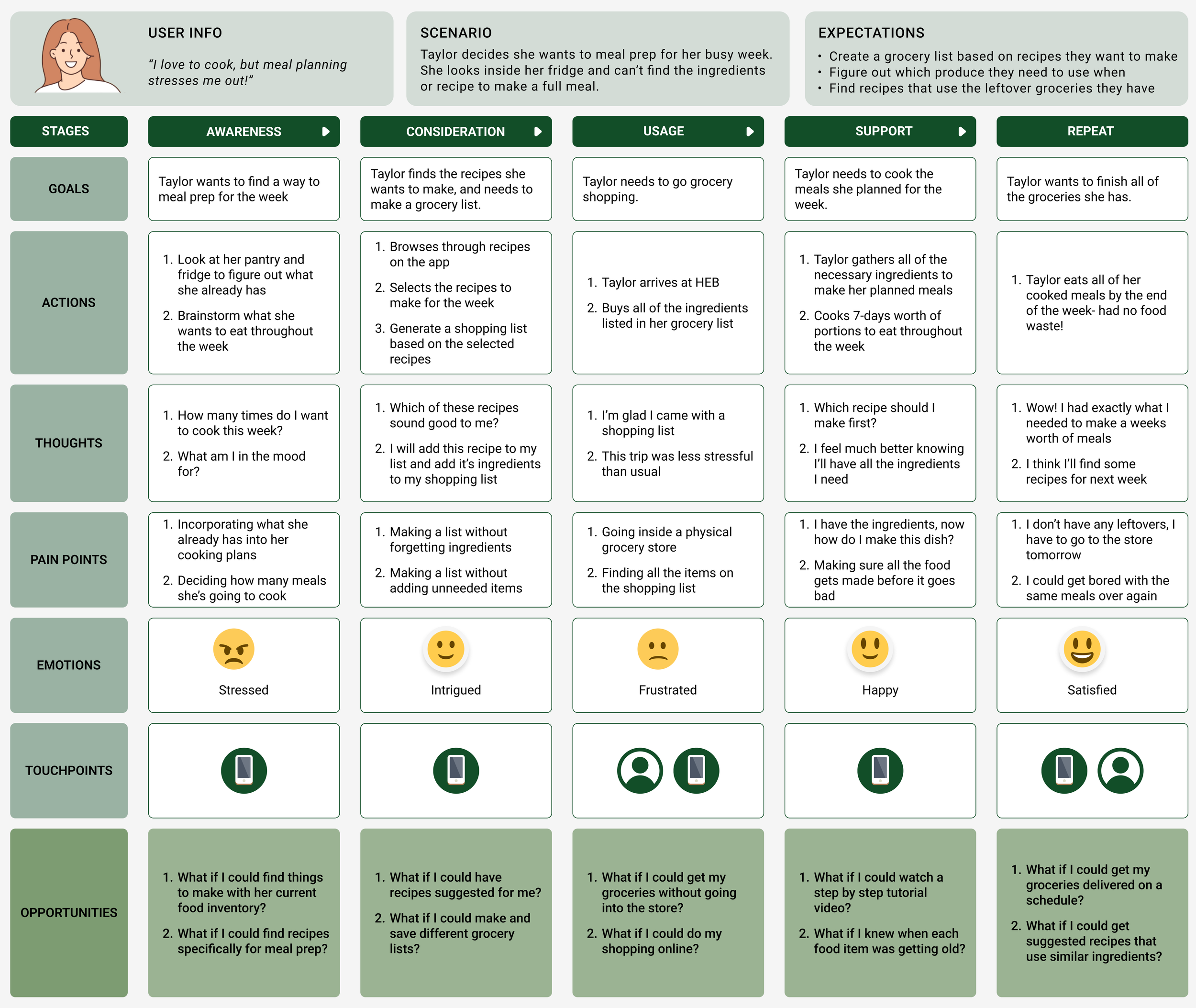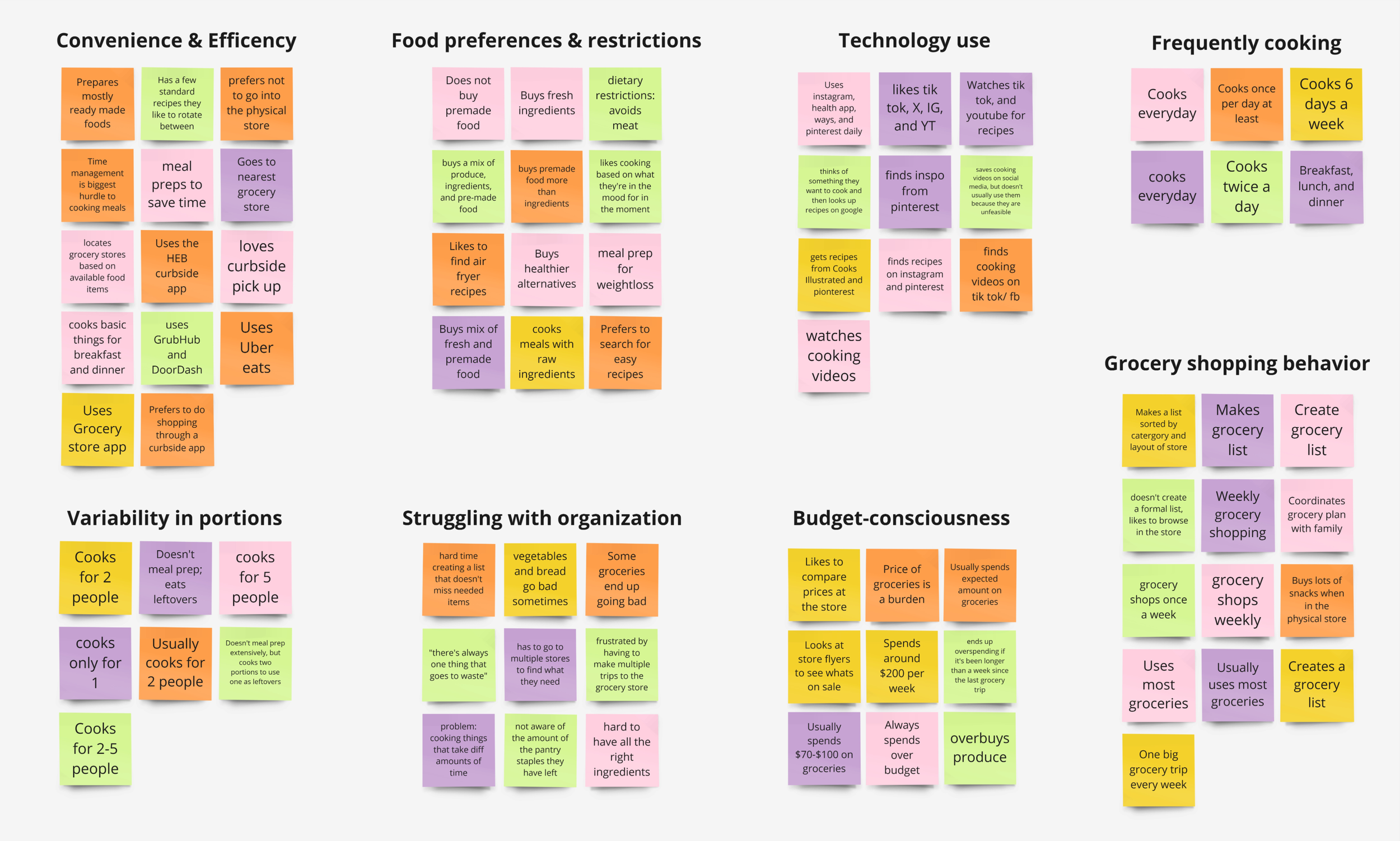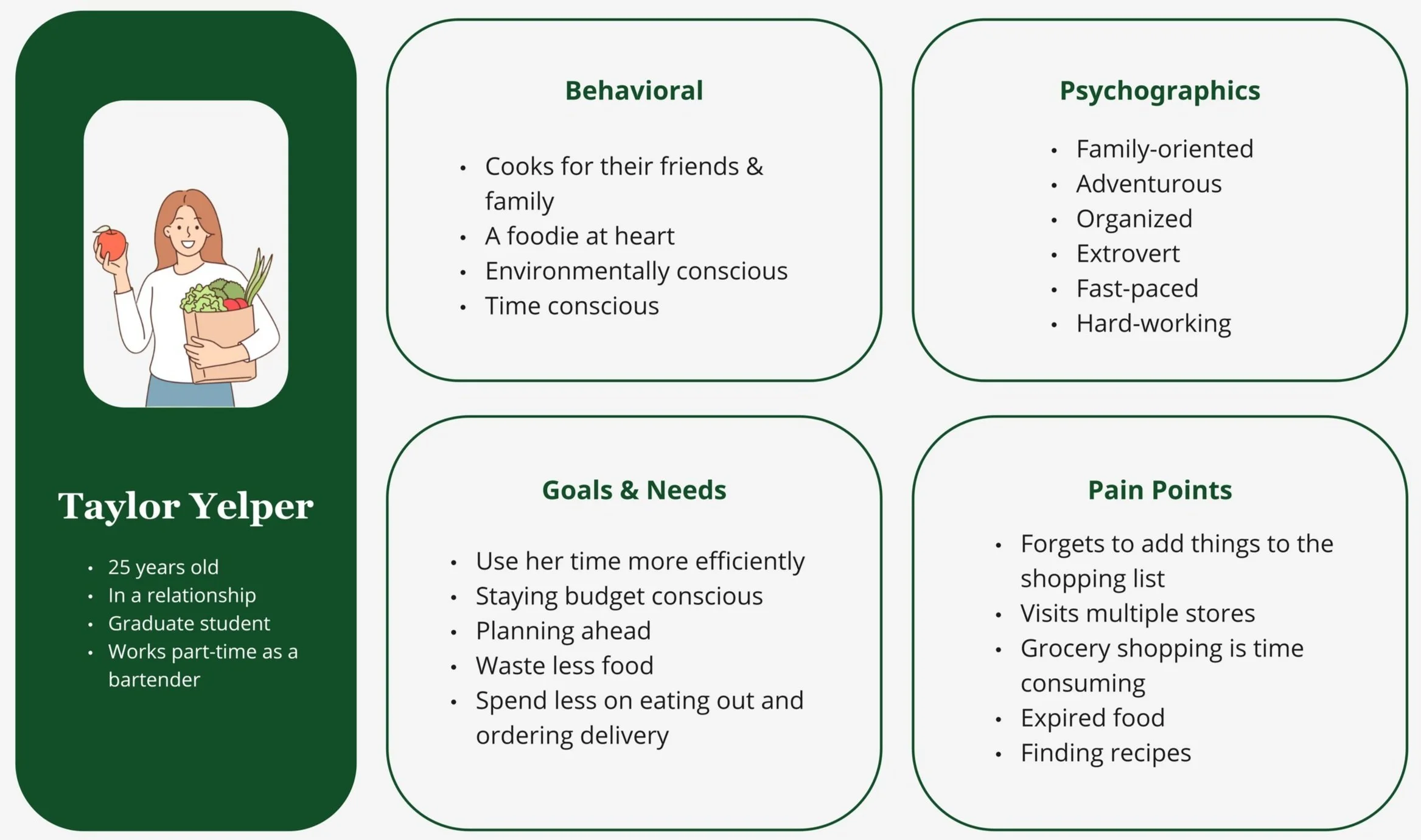 EcoFresh is an app that aims to streamline grocery shopping, meal planning, and home cooking. We've noticed that potential users face challenges creating grocery lists, finding new recipes, and reducing their food waste at home, leading to frustration from extra trips to the store and recipe improvisation.