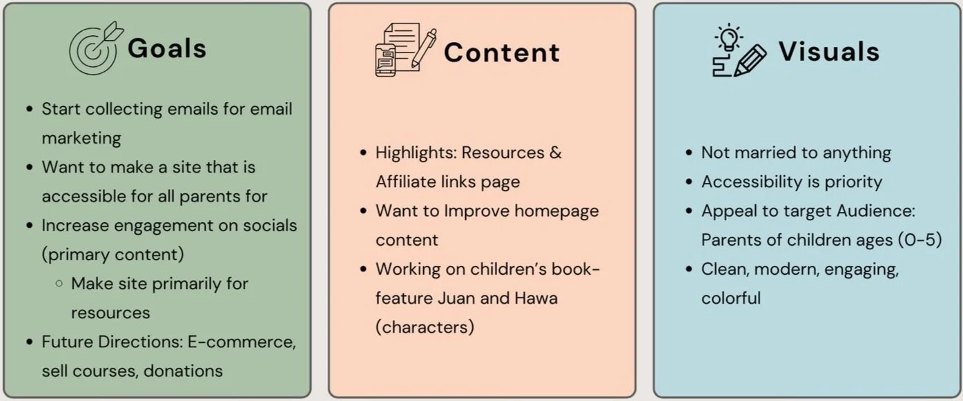 The overarching goal of redesigning Lil Bits of Language is to ensure equitable access for all parents and caregivers to free, user-friendly resources, facilitating support for their child's speech and language development. We have observed that parents struggle to find reliable resources that provide tools to aid in their child's development while also fostering a supportive parenting community.