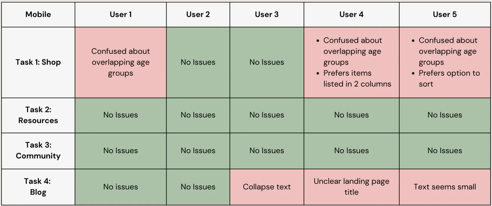 Mobile Usability Testing Results