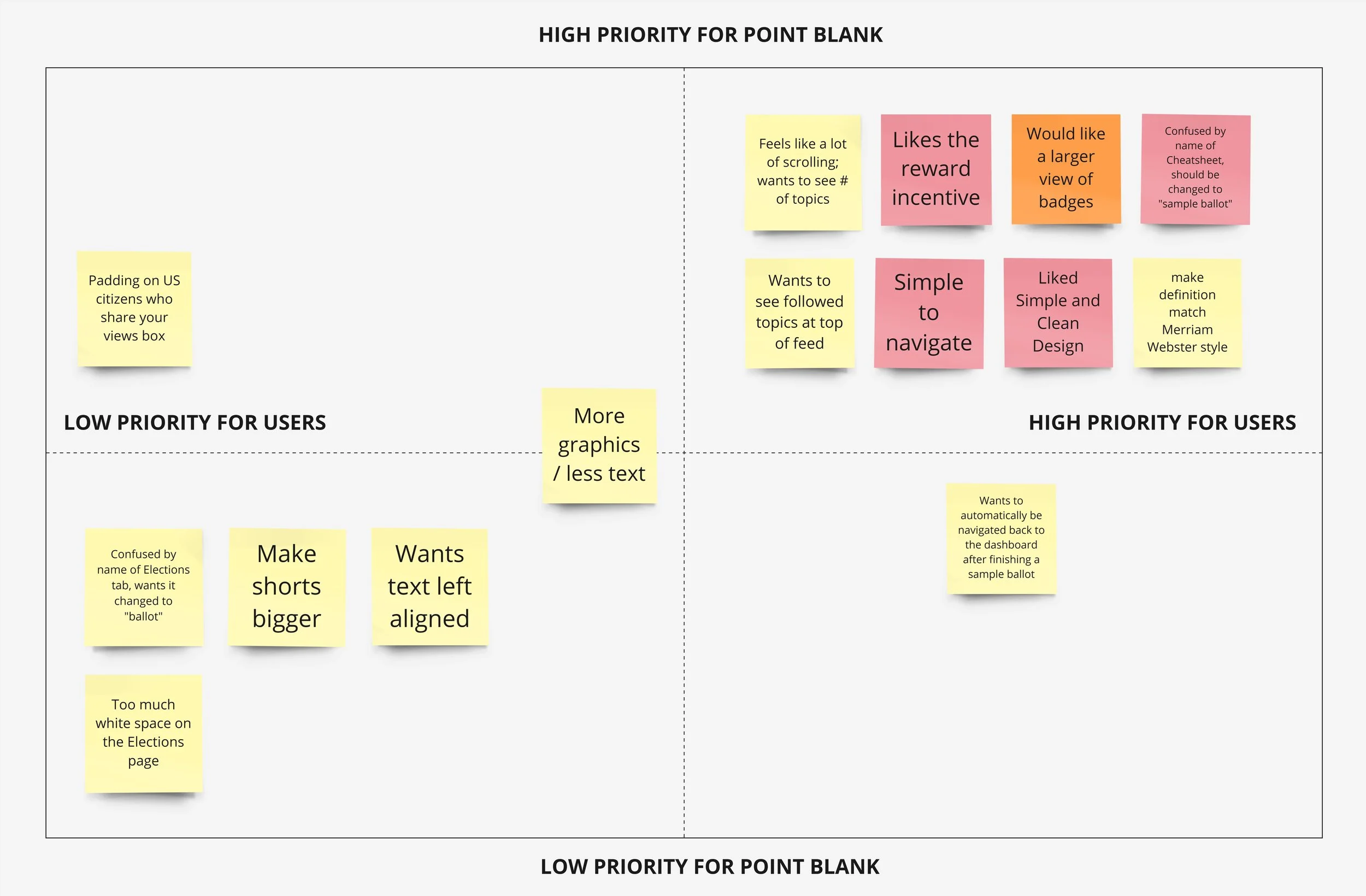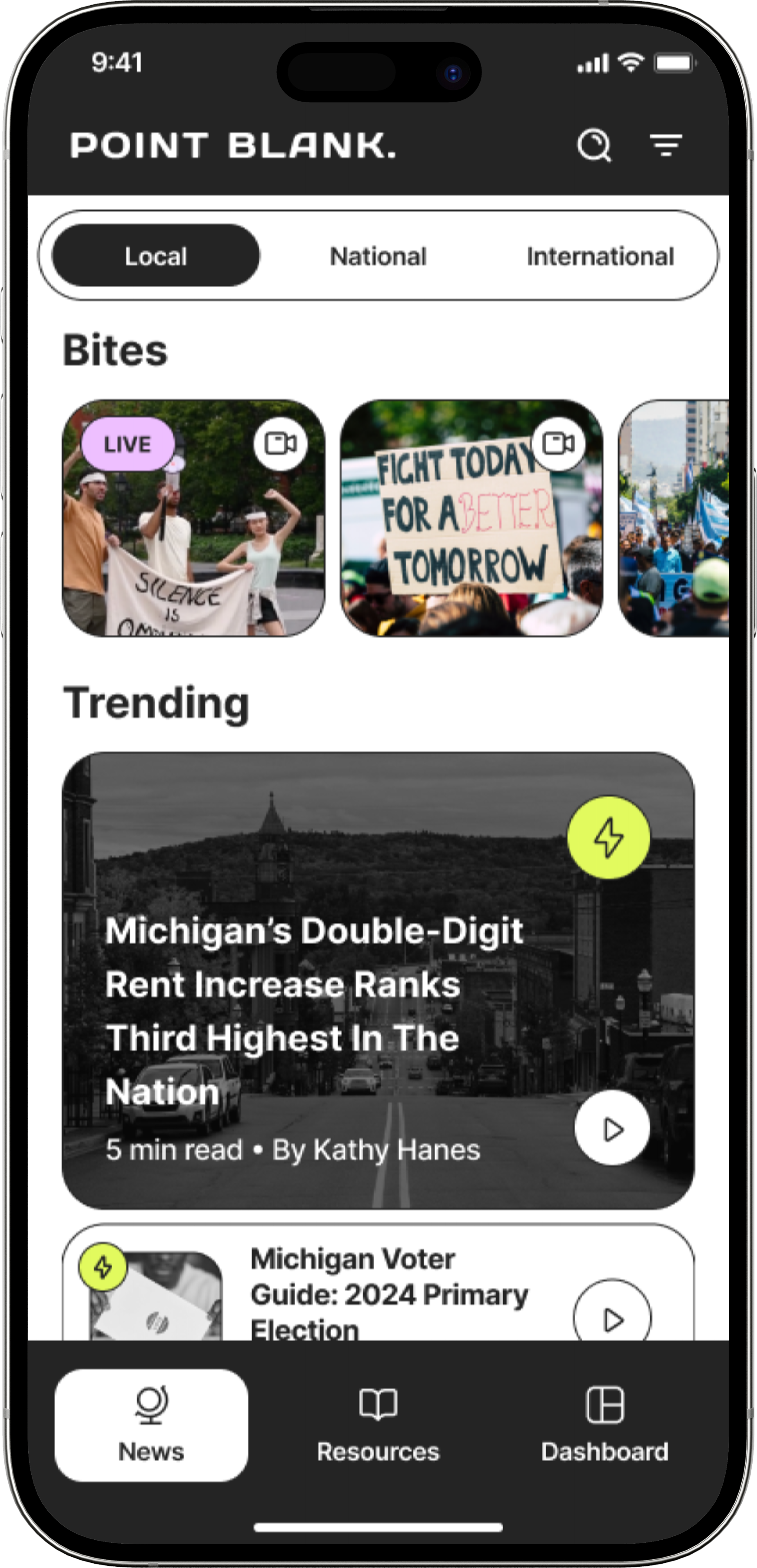 Point Blank is a mobile app that delivers educational and easily digestible political content for younger audiences. No political jargon, no bias, and no heavily emotional driven content. We make learning about politics easy and emphasize the importance of voicing your informed opinions at the polls.